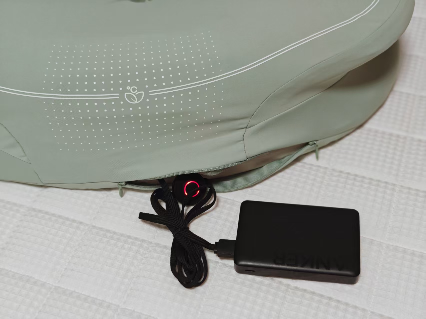 此外,这款荷叶枕的一大特色就是内置牵引气囊,可以通过动按压气囊调节颈椎支撑软硬度,操作非常简单。如果高度感觉过高,也能通过按压气囊旁边的按钮释放气压,做到柔软支撑而又不塌陷,让颈部始终保持在一个放松舒适的状态。