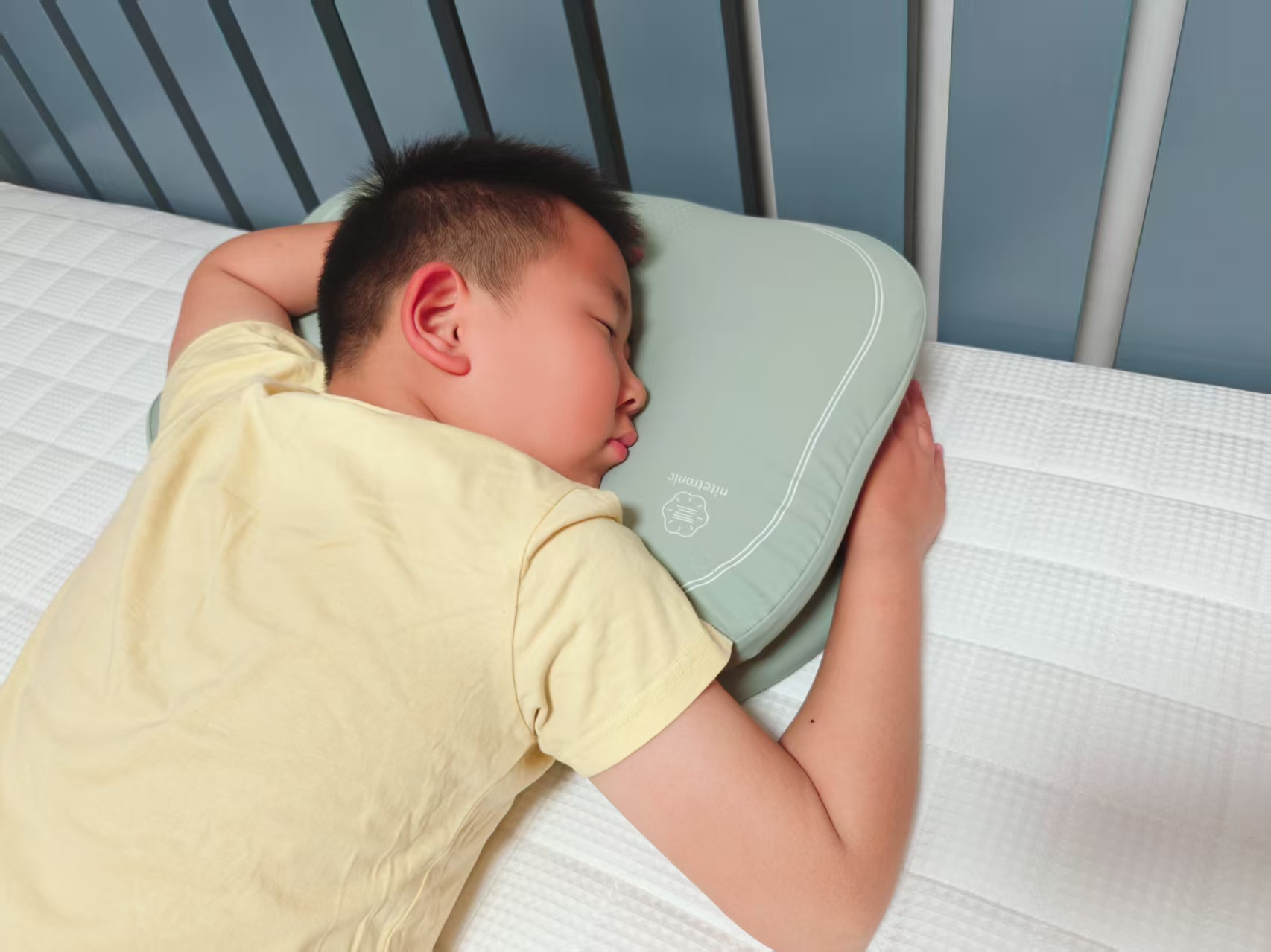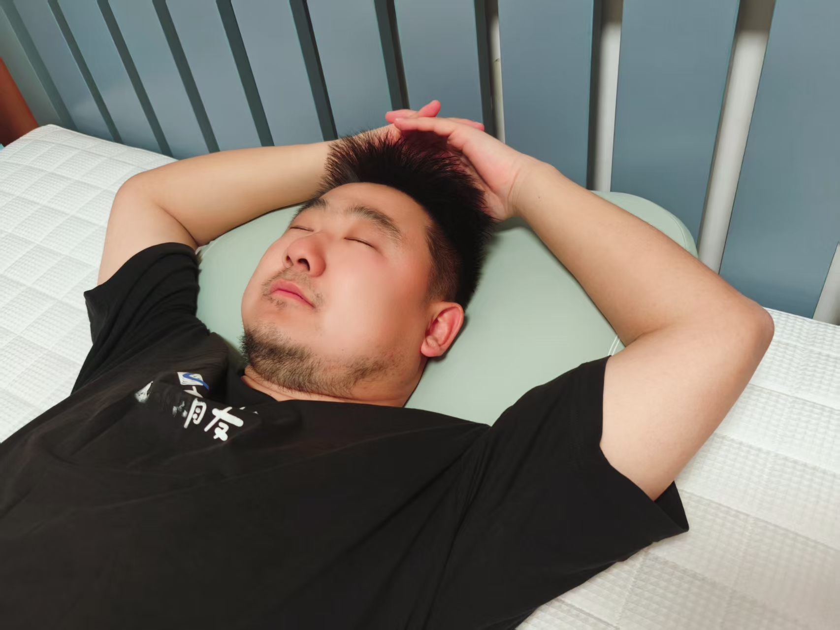 楼主老公初次接触时,记忆棉的柔软触感让人放松,但不同于普通软枕的“陷进去”感,荷叶弧度会自然贴合颈部,仿佛有一双手轻托,让颈部有更柔韧的支撑感。仰卧时头窝能恰到好处的陷入荷叶凹陷区,颈椎与枕头之间无缝隙;侧睡时高度足够,避免耳朵受压或肩膀顶到头部。翻身时内芯也能回弹及时,不会出现“突然落空”的不适!