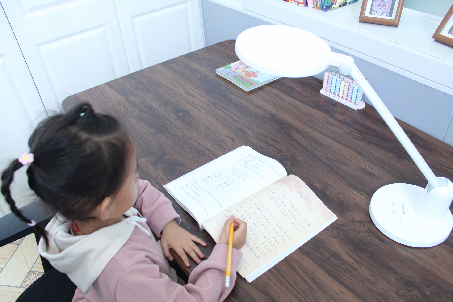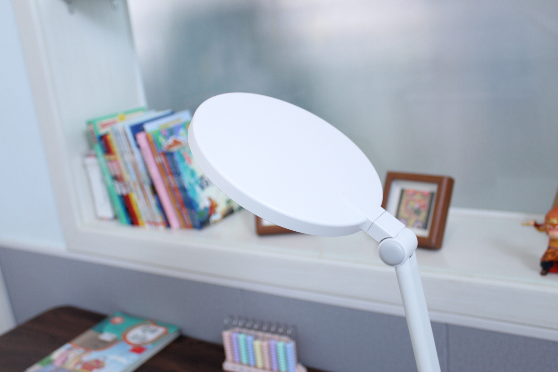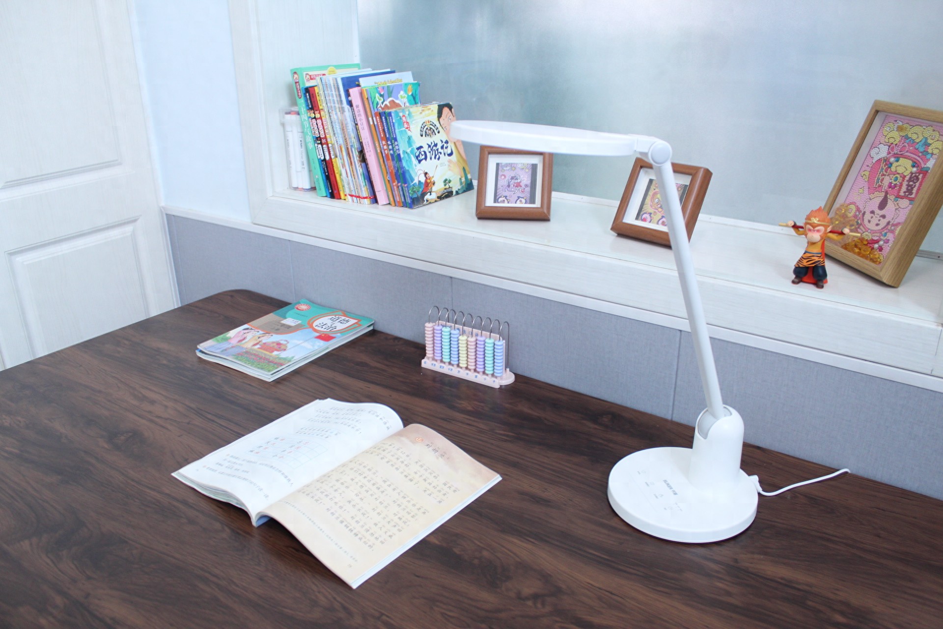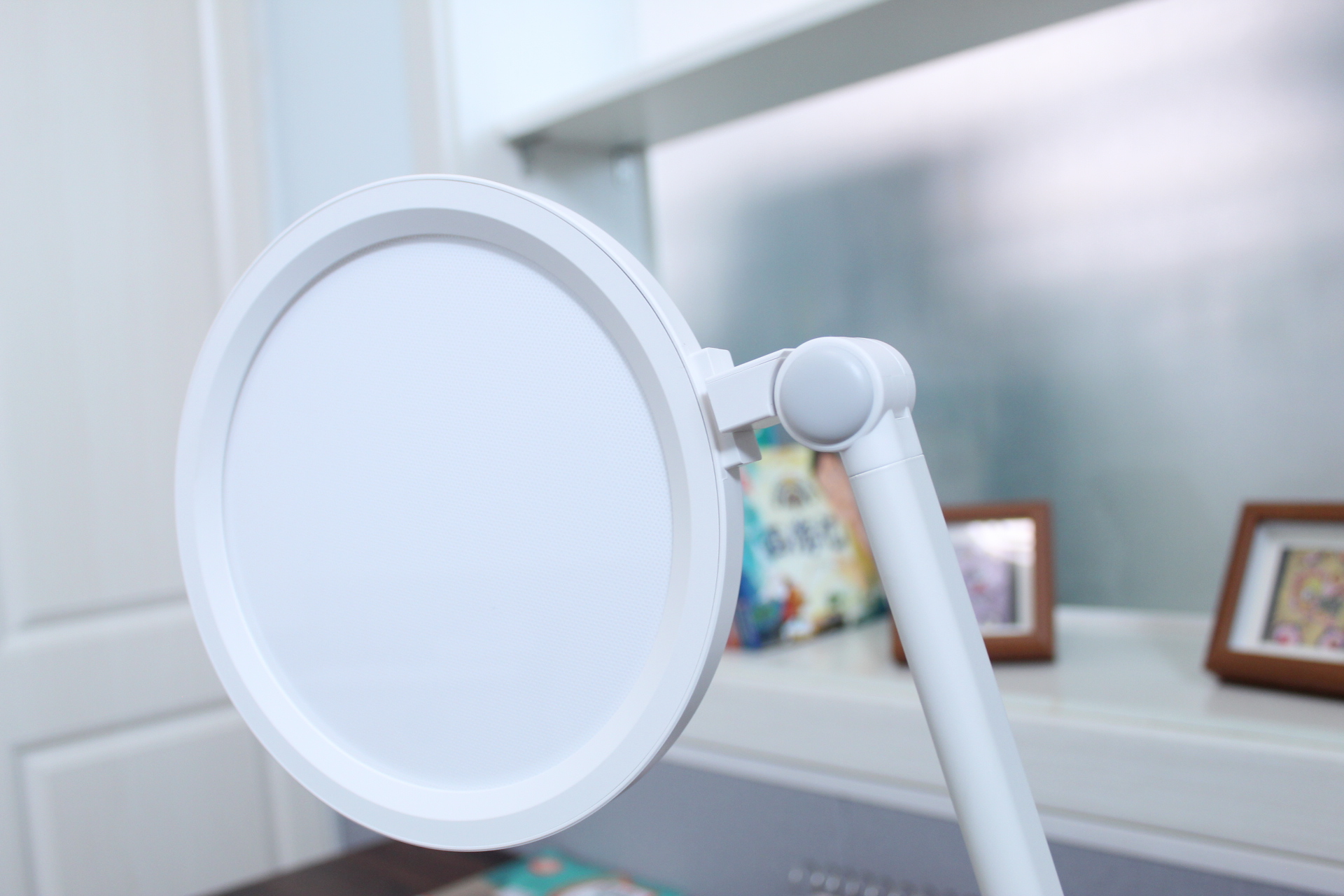这款书客SKY护眼台灯的角度调节功能绝非一个简单的“可动”设计,它直接关系到光线能否被高效、舒适地运用到学习场景中。不同的调节方式在便利性、光照质量和使用寿命上有着巨大的区别。可自由调节的台灯才能适应不同场景:孩子可以在桌上进行读写、绘画、做手工等多种活动。读写的重点照明区域小、亮度可稍高;绘画则需要更宽泛、均匀的照明。多维度调节可以快速适应这些需求。
