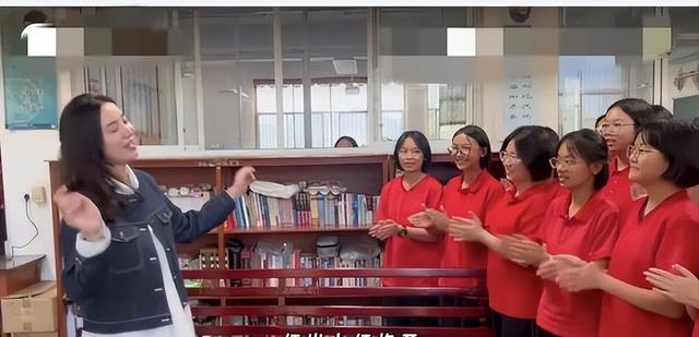 而宋佳则再次的带领着学生唱起了《红梅赞》。