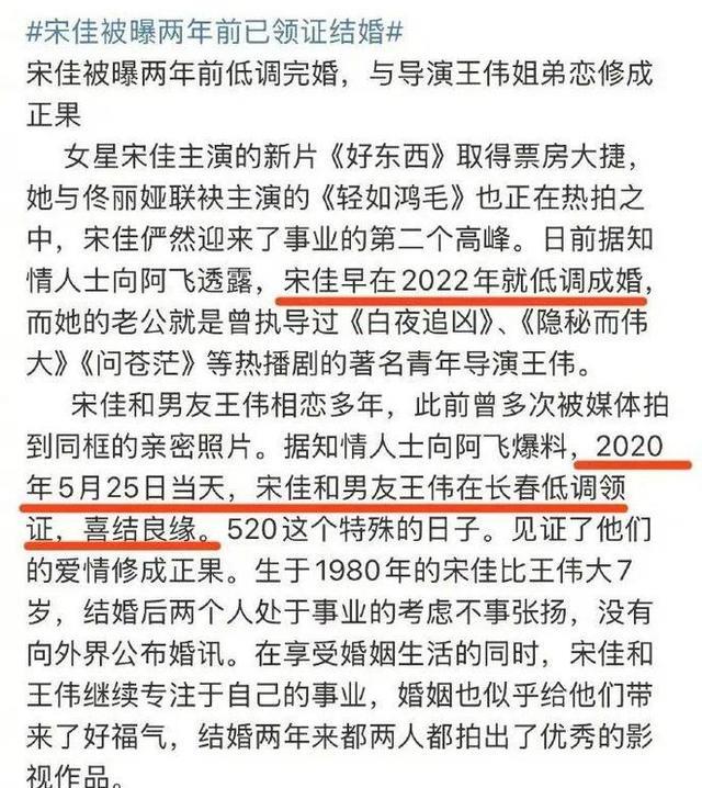 搜狐娱乐还曝出宋佳前两年就已经领证结婚了。