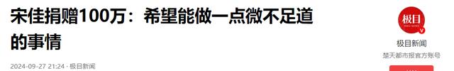 宋佳捐赠100万:希望能做一点微不足道的事情 2024-09-27 21:24·极目新闻