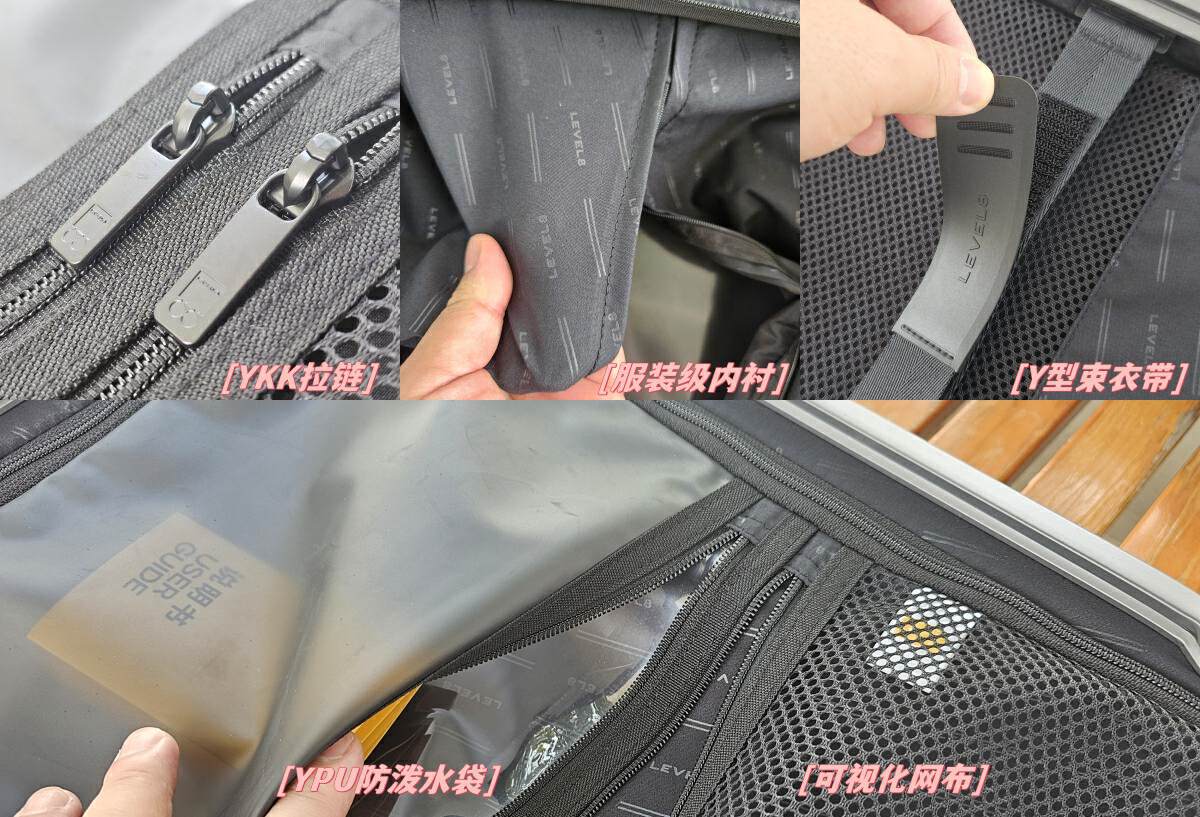从外观方面,氦系列在正面的LOGO设计、铝框材质的运用更突出;尤其是在密码锁的设计体验方面更丝滑;内部的收纳设计也进行了设计,规划了干湿分离区等。
