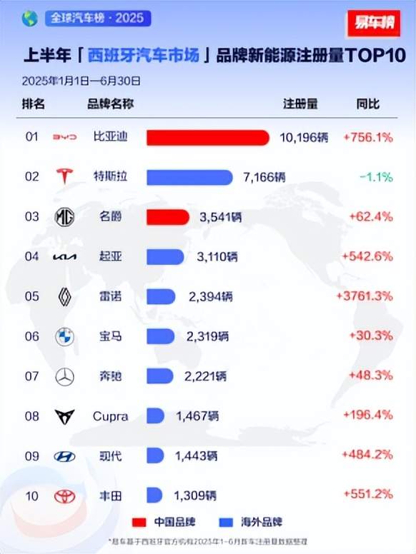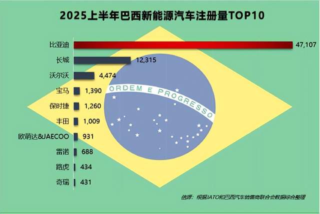 在政策多变、关税复杂著称的美洲市场上,比亚迪用巴西作为标杆市场,打造了中国企业出海的新名片。继2024年创下7.6万辆的年销量纪录后,比亚迪在2025年上半年继续蝉联巴西新能源汽车销冠,销量达到4.7万辆,同比增长45%。这一数字,是第二至第十名之和的两倍多,稳坐巴西新能源汽车销量榜首。