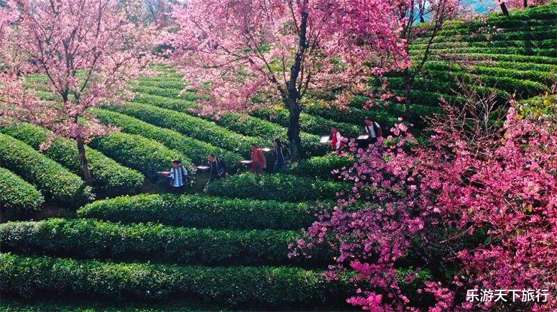 这里种植的冬樱花,与春季开花的其他樱花品种不同,天生在冬季至早春开花,加上低纬度、高海拔、干湿季分明的气候与茶园遮荫的种植方式共同作用,形成了 “反季节”樱花盛开 的独特景观。