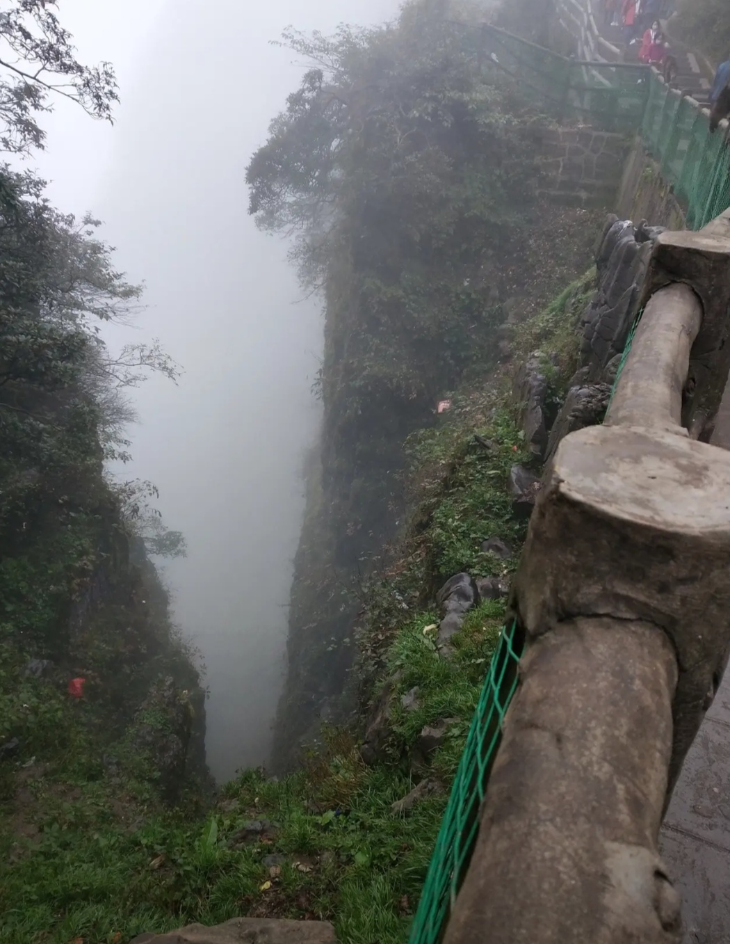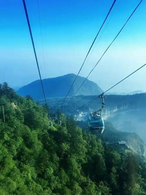乘上登山的缆车,飞跃在高山与巨大的树冠之上,飘飘忽忽,犹如腾云驾雾。在乘缆车时,还真幸运见到了佛光。