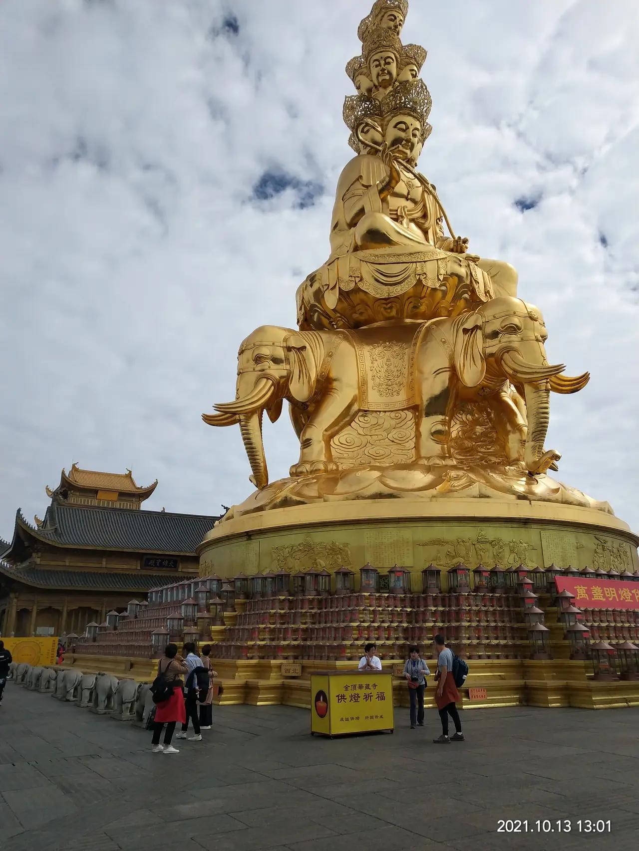 峨顶耸立的大佛,气势宏伟,在阳光的照耀下,金碧辉煌。