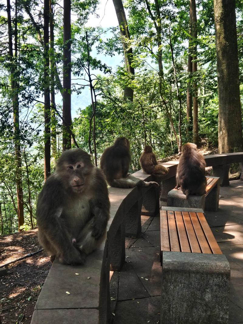下山途中,峨眉山猕猴,也逗人发笑,它们竟敢拦路“抢劫”包包,吓的女士们发出尖叫声。