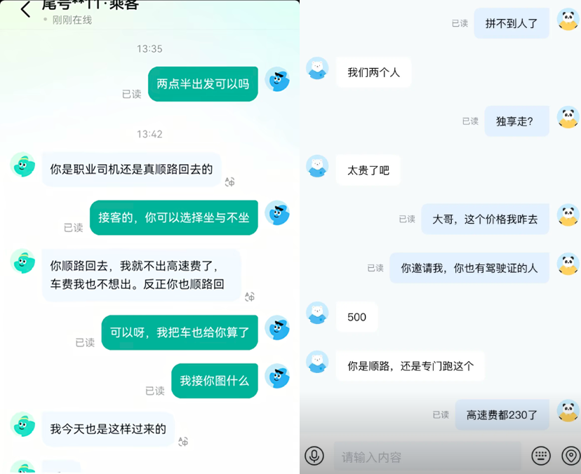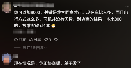 乘客这边也是喜忧参半,有人觉得紧急时刻多花点钱能顺利出行很划算,也有人担心议价会变成恶意加价的由头,原本平价的顺风车失去性价比,甚至出现司机挑单、坐地起价的情况。