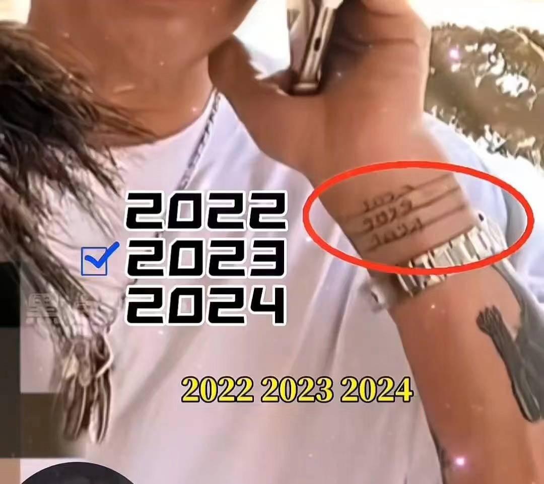 另一个引人关注的纹身,是具俊晔手臂上的“一年一道杠”。