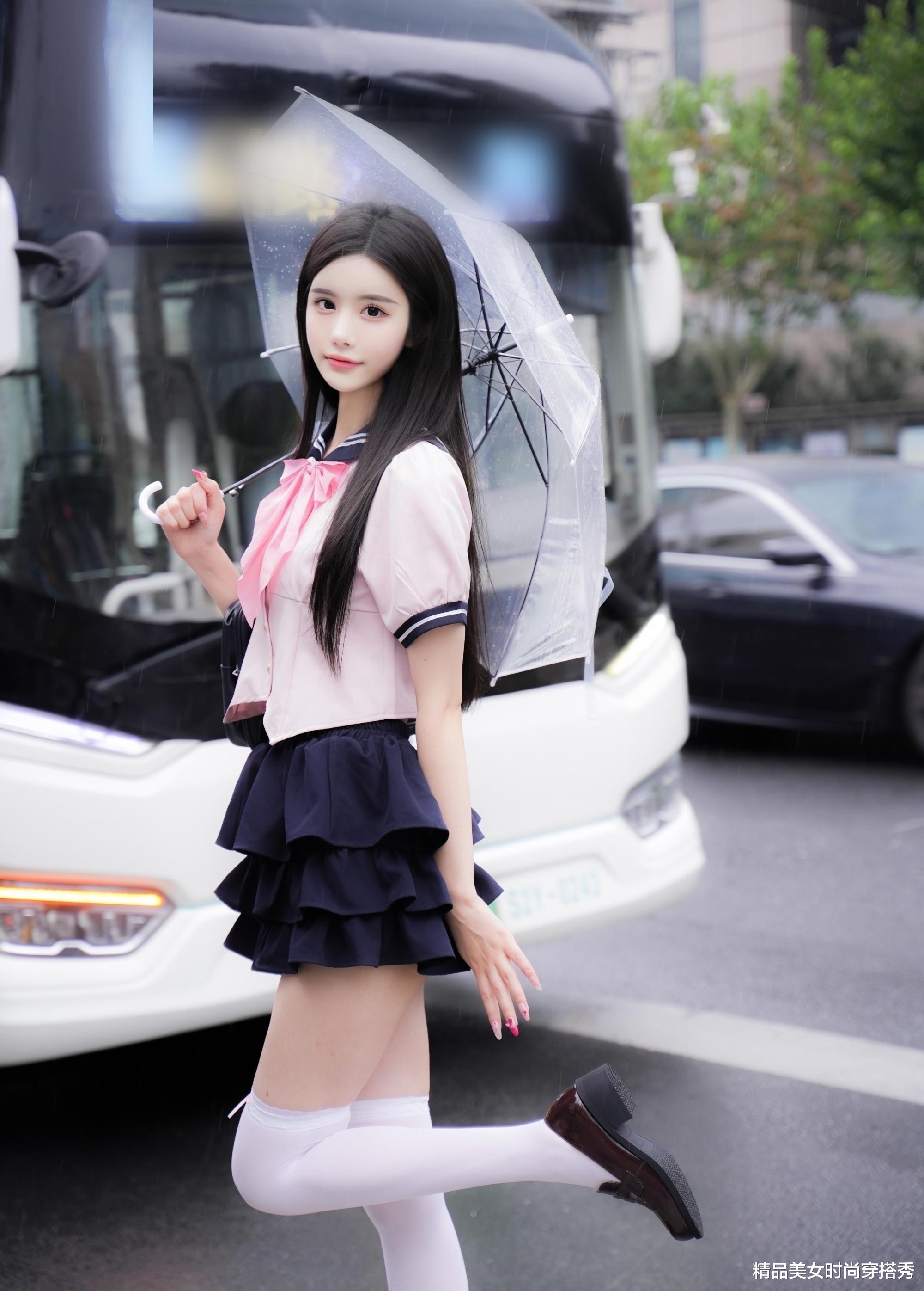 她的穿搭,不仅是对经典JK风格的致敬,更是对青春的一种诠释。在雨天,也能穿出属于自己的独特格调,让每一天都充满新鲜感与活力。💪