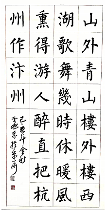 贾旭东的楷书静中有动,风雅奇艺,大气雄浑又不失谦谦君子之气度。这更是书法之外精神气质的升华。希望贾旭东百尺竿头更进一步,继续努力学习,激流勇进,再创佳绩。