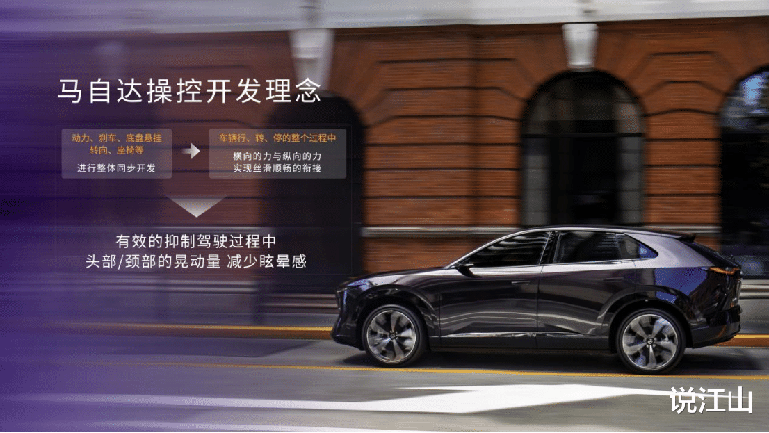 作为一向强调“人马一体”的品牌,马自达在电动时代依然把“驾控”放在核心位置。EZ-60采用中欧多国道路标准进行调校,搭载连续可变阻尼悬挂,强调抑制“点头/抬头”现象,减少晕车感——这一点对于家庭用户来说颇具吸引力。不过值得注意的是,它并未刻意追求零百加速的极致性能,而是更注重动力输出的线性与可控性,这种“反爆款逻辑”的设定,也许反而会成为其吸引特定用户群的标签。