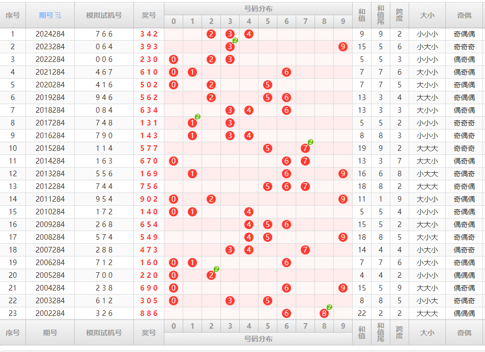 和值参考:历史开奖和值主要集中在10-15点这个中间区域,选号时可以往这个范围靠拢。