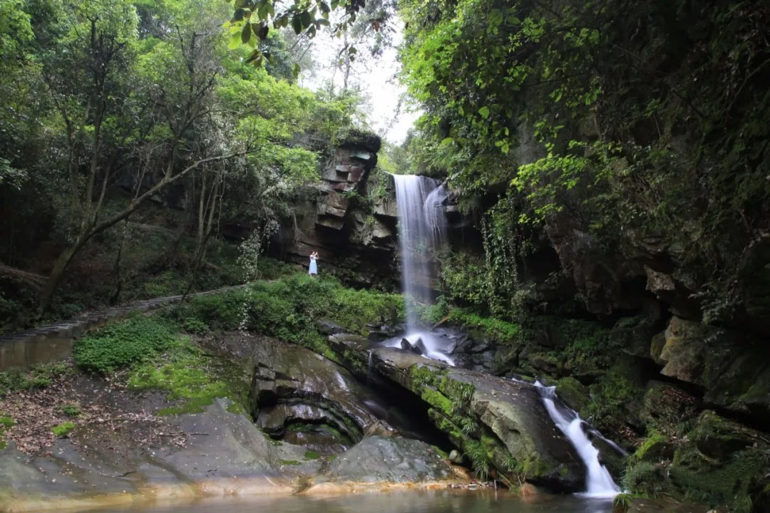 沿着溪流旁的步道前行,脚下是潺潺的流水,身旁是奇形怪状的岩石,抬头是郁郁葱葱的树木,累了,便静坐着看溪水时浅时深、时急时缓,伴着这溪声与绿意,连时光都慢了下来。