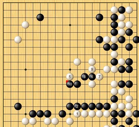 黑135尖顶,俗手。白136,应该在138位冲。实战,黑137成为最后的败招。这手棋,等于逼着白棋占138位绝好点。一瞬间,黑棋的胜率只剩下5%。