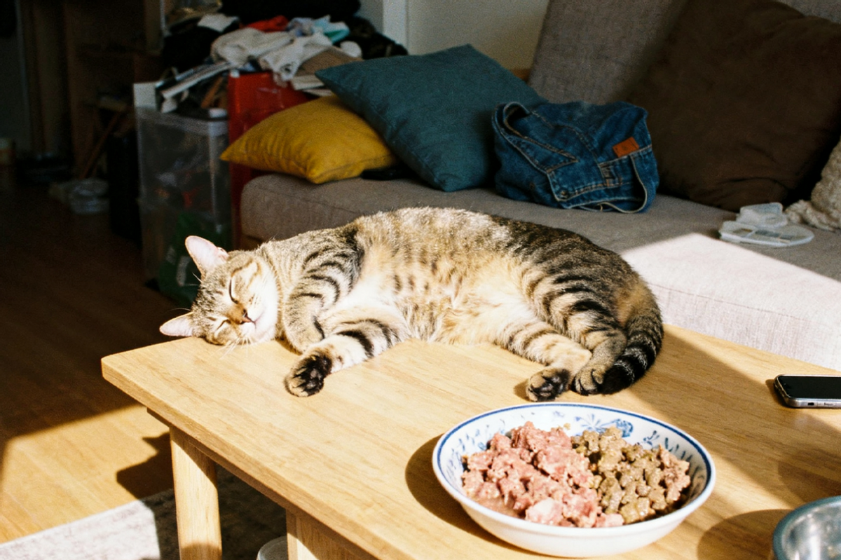 下决心自己做猫饭后,我才发现是“理想很丰满,现实很骨感”。跟着网上食谱买鸡胸肉、三文鱼,蒸好拌上钙粉,结果猫闻了闻就扭头走😤 后来才知道,我凭感觉配的比例根本不对,猫需要的牛磺酸、钙磷比都没达标,长期吃会伤心脏、影响骨骼。