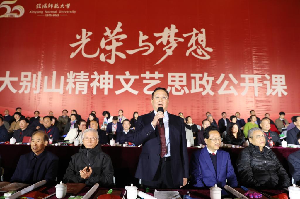 在庄重氛围中,信阳师范大学党委书记王文鹏郑重宣布:“光荣与梦想——信阳师范大学大别山精神文艺思政公开课,现在上课!”铿锵之音回荡校园,正式拉开这场融汇历史荣光与时代梦想的庆典华章。