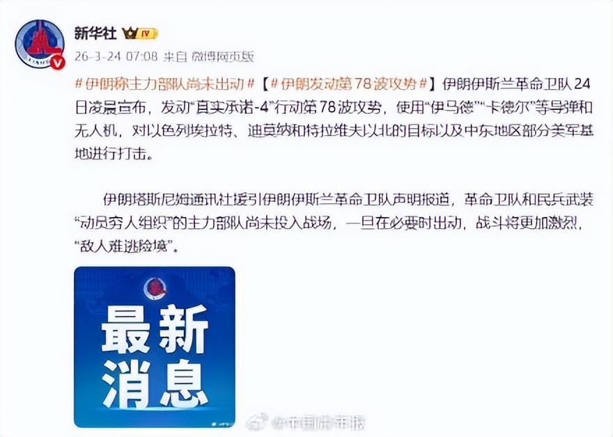 革命卫队3月24日还放了一句话:主力部队尚未投入战场,一旦出动,战斗将更加激烈。