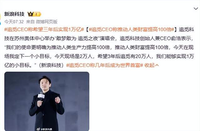 追觅科技营收目标是1万亿 图源:微博