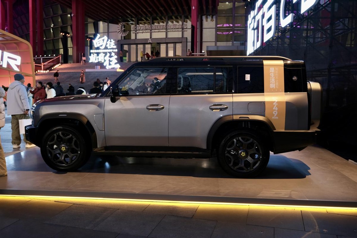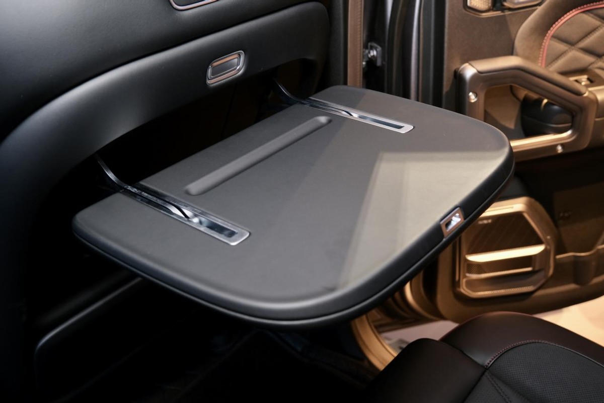 侧面采用大量平直的线条,造型上属于经典越野车风格,不过新车针对侧踏板强度进行了提升,全面换装铝合金支撑骨架,宽度也增加到了140mm。两款不同配色的轮毂均为锻造材质,单颗承重可达800kg。车身尺寸方面,新车长宽高分别为4795/2006/1880mm,轴距为3023mm,离地间隙220mm,接近角28°,离去角30°,涉水深度可达700mm。