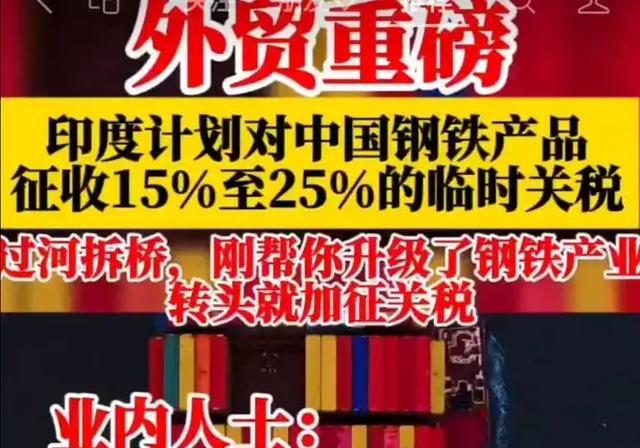 在中方对美关税战发出严厉警告之际,2025年4月21日,印度总理莫迪政府突然宣布对部分进口钢铁产品加征12%临时关税,尽管印度官方未明确指向中国,但作为其第二大钢铁进口来源国,此举无疑直指中国。