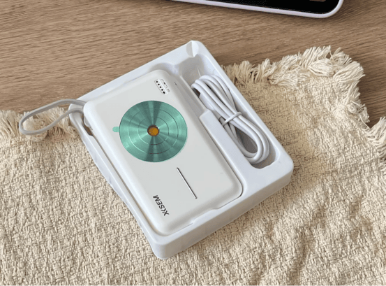 内部搭载 NTC 控温芯片,外部使用石墨烯散热层,长时间充电温度会有一点点高和烫手感。电量偏小,仅能为手机充1次左右,但胜在便携与设计简洁。整体属于“轻量随身型”,非常适合短途出门或日常携带。