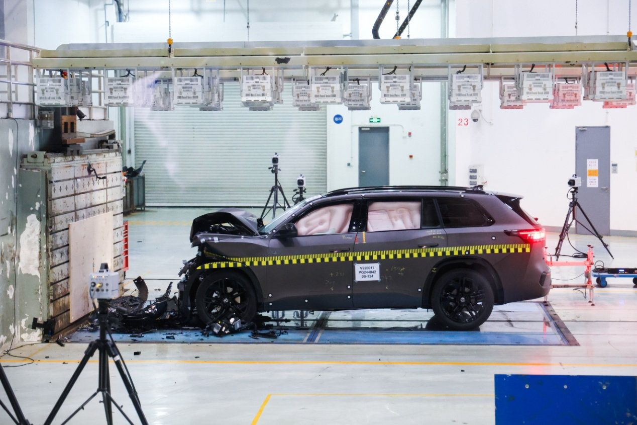 最令她感到震撼的,是厂家在研发阶段进行的360度无死角碰撞——除了常见的正碰、偏置碰撞、侧碰、追尾之类,上汽大众还在GB国标、中汽中心C-NCAP、中保研C-IASI三大标准基础上建立了一套自己的VW标准,增加了一系列更高难度的碰撞测试项目。