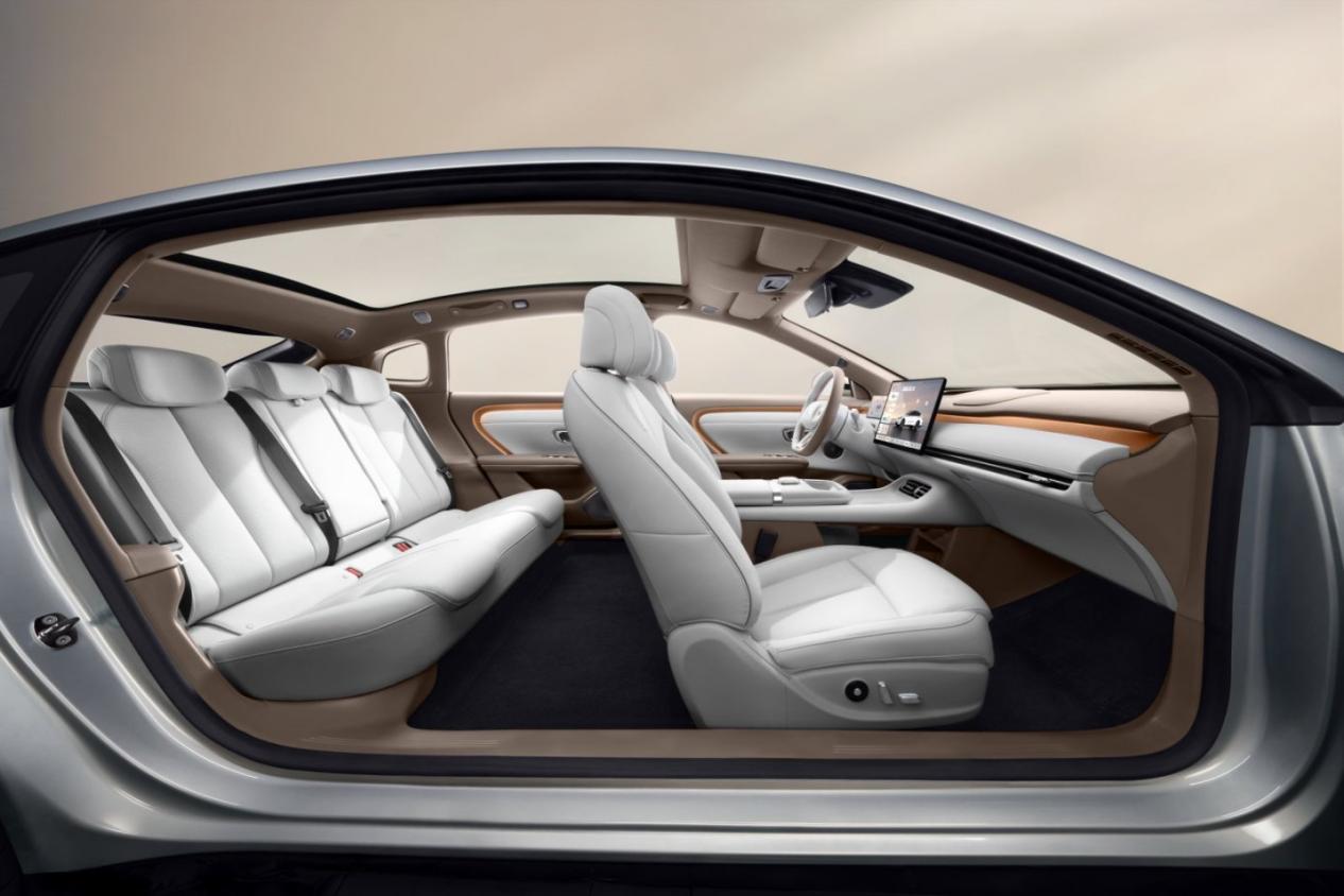 车身线条采用“流体雕塑”设计语言,融合东方美学与空气动力学原理,不仅呈现出静若处子、动若脱兔的视觉张力,更实现了0.23Cd的超低风阻系数。前脸贯穿式灯组与发光徽标的组合,在夜幕中勾勒出独特的科技光影;内饰则采用环抱式座舱设计,甄选亲肤环保材质,搭配符合人体工学的悬浮式座椅,让每次出行都成为身心放松的旅程。