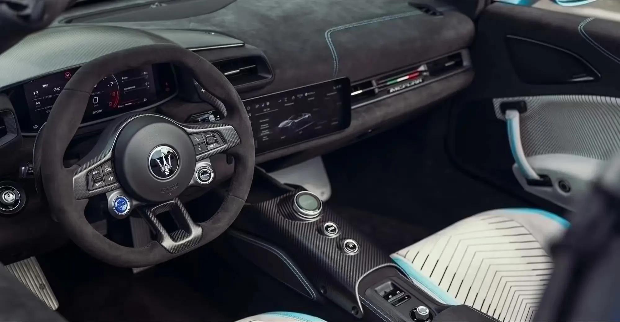 玛莎拉蒂新超跑MCPURA看着唬人,实则是MC20中期改款换壳车!核心三大件没动:碳纤维单体壳车身、630马力3.0T V6双涡轮发动机(带F1预燃室技术)、8速Tremec双离合变速箱全照搬,零百加速仍2.9秒。