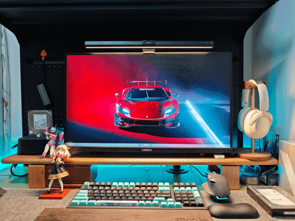 ▲然后把书客SKR1屏幕挂灯往显示器一挂,完事!一开灯,桌面空间从此不再黑不溜秋,RA97的高显色指数让桌面上的手办、外设颜色更鲜明,让人看着更加愉悦。17.5° 专研定制黄金光面角度不带来炫光,也让屏幕也没有那么突兀刺眼了,有效降低眼疲劳~