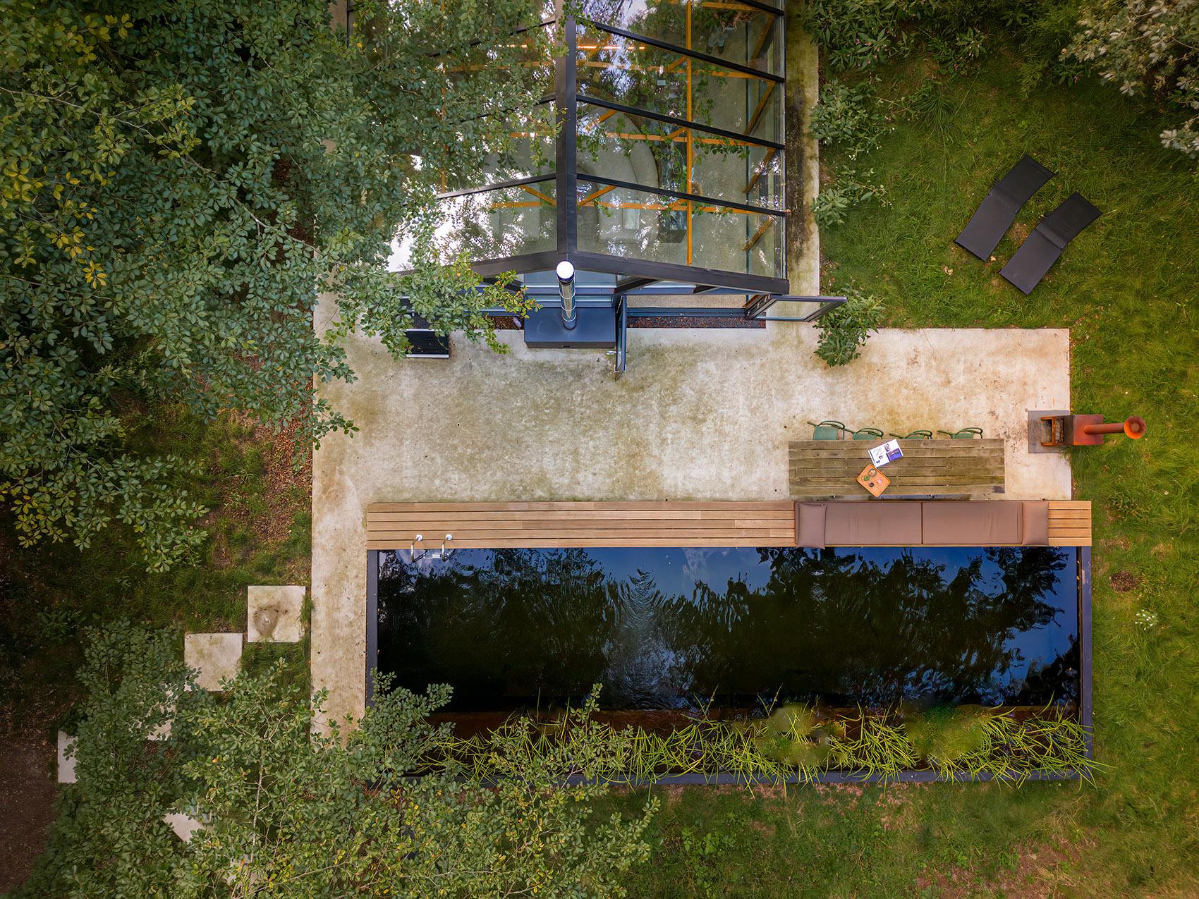 艺加设计和您一起赏析绿屋酒店设计,这是连屋顶都由玻璃构成的房子,可以充分享受周围的森林。房屋的前方有一处没有加热的天然泳池,一条12 米长的泳道和一个用熔岩石和黄色鸢尾花净化水的螺旋藻过滤器,是一处供人轻松充电的美妙场所。