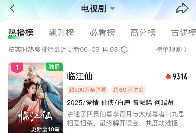可最近《临江仙》一开播就成了“破局者”,才三天热度就飙到9500,直接杀疯了各大榜单。