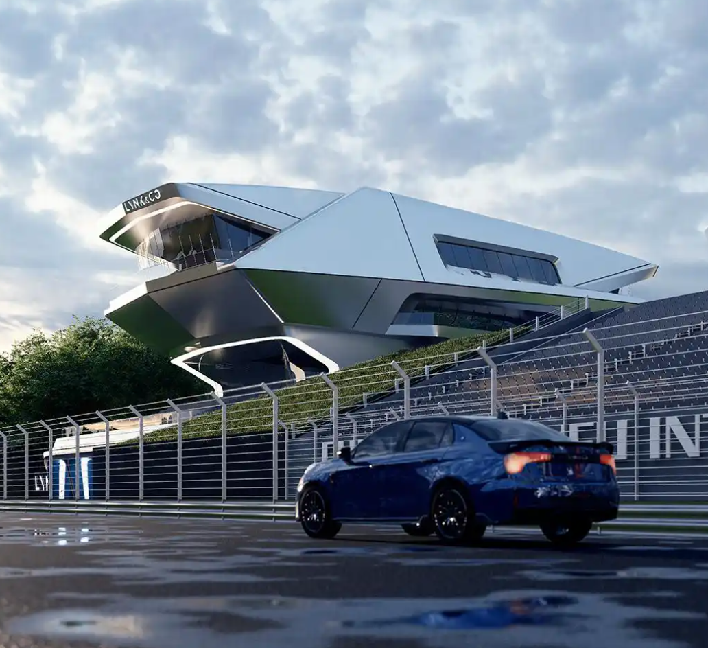 领克成都MEC是大型项目吉利铭泰方程时空港的重要组成部分,其建设也被列为成都东部新区智造产业升级的重点工作。项目坐落于成都天府国际赛道的核心区域,紧邻主看台,并具备直接连通赛道与社会道路的独特区位条件。这使得它在物理空间上成为了专业赛道与城市生活之间的过渡与链接,在象征意义上,则构成了赛事活动、领克品牌社区与城市日常之间的重要交汇点。