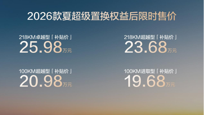 听说比亚迪新出了一款叫2026款“夏”的大MPV,挺适合家庭的。这车昨天正式上市,一共有4个版本,现在有个限时优惠,最低不到20万就能买到,顶配也就26万左右。感觉用买一辆普通中型SUV的钱,就能享受到不少以前豪华车上才有的配置。