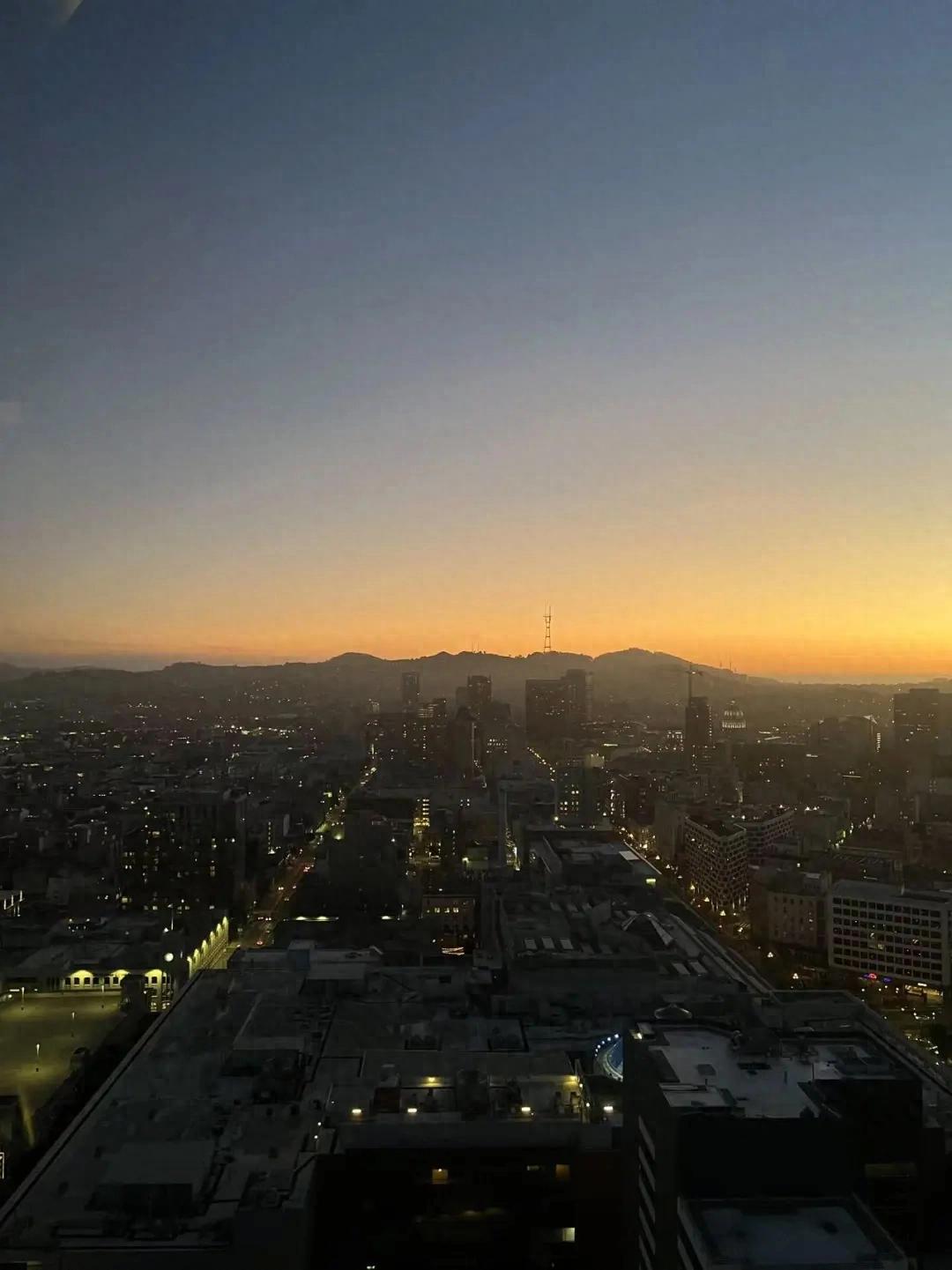 酒会的地点位于旧金山Marriott Marquis的观景层,站在窗边能俯瞰半拉旧金山,景色相当不错。