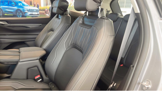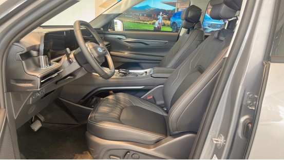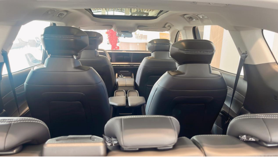 打开车门,最吸引我的是它的2+2+3座椅布局。第二排是两个独立座椅,带扶手,坐上去包裹感不错,而且中间留了通道,进出第三排不用折腾座椅,这点对老人和孩子特别友好。销售特意演示了二排的加热功能,说这是新款增加的配置,冬天用车会舒服很多。