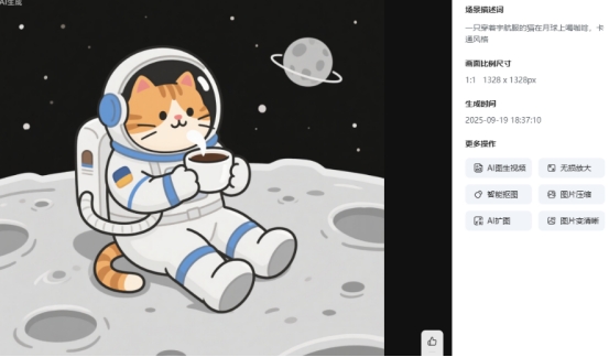 比如如输入“一只穿着宇航服的猫在月球上喝咖啡,卡通风格”那么AI就会根据你的需求生成一副这样的图片,大大加快了构思的速度和效率。