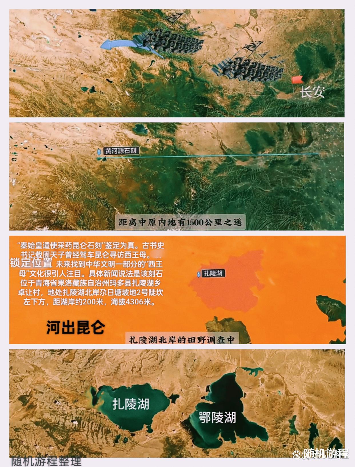 又是“时空信箱”,史书记载说,周天子曾经驾车昆仑寻访西王母,从古至今都有国人寻找“西王母”长生不老药的,虽然渺茫但还是前赴后继。从古代车马速度看,大致上就是在青海区域。“河出昆仑”,这个恐怕是最接近古代先人记忆的地标!至关重要。