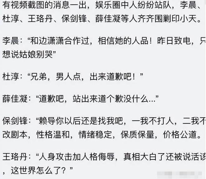 籍籍无名的李晨、杜淳就紧忙表示,自己与边潇潇有过合作,相信她的人品。