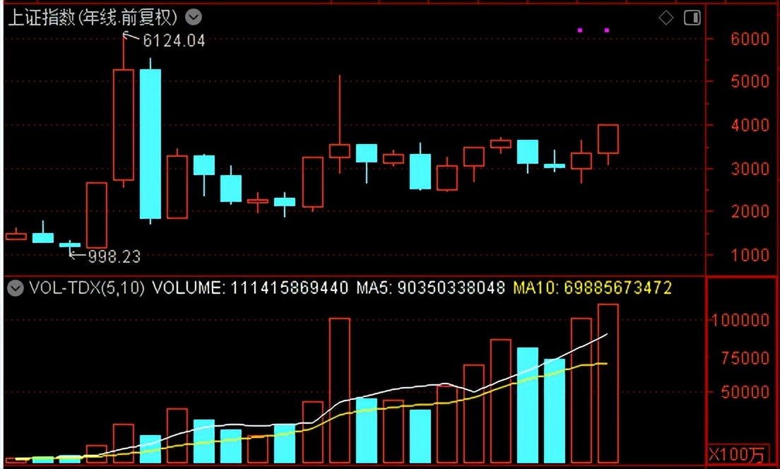 上证指数的年线,现在肯定是高位,但从年线看是不是可能只是开始?才突破10年的平台。