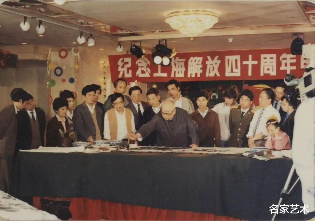 1989年 纪念上海解放四十周年书画会上观摩程十发作画