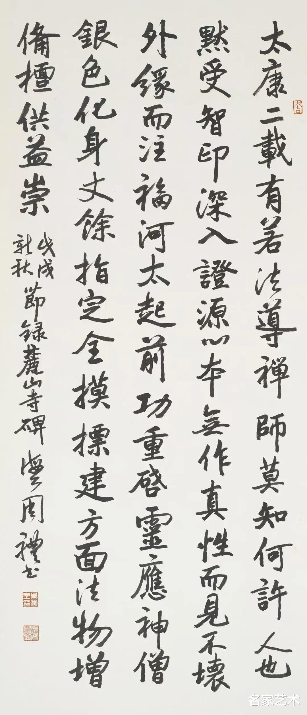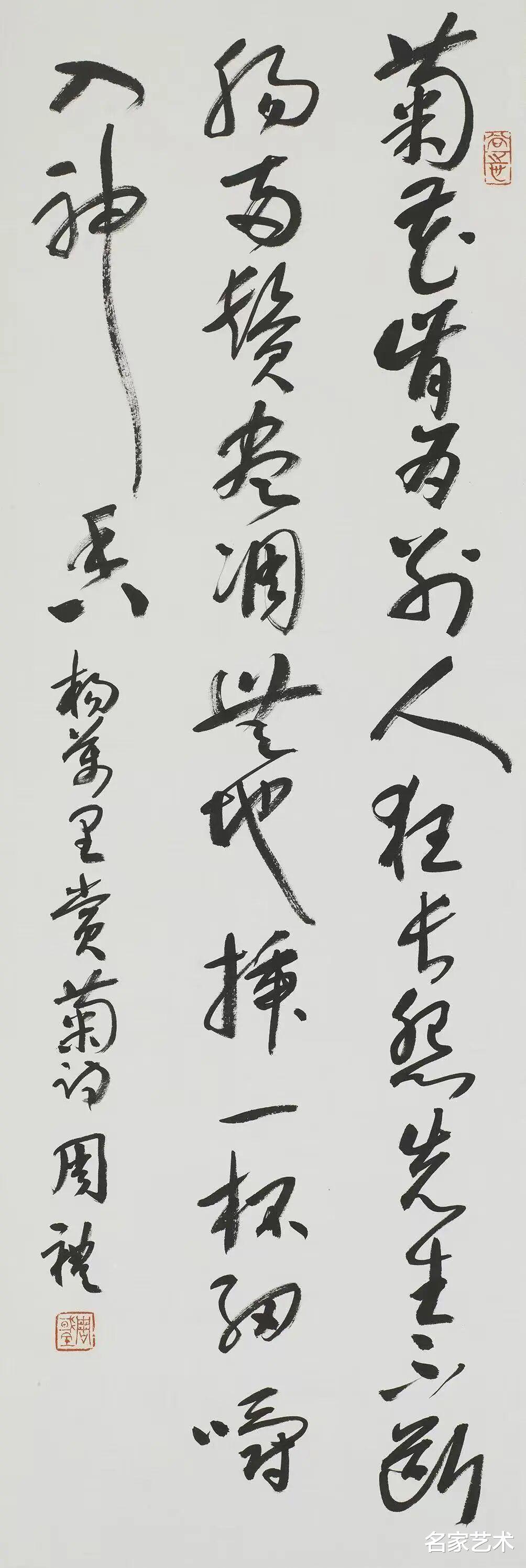 “书者,散也。”蔡邕的这一名言,在书法的形式尚未完备之际,就为书法作了最简约,也是最精准地界定。千百年来,虽然一直被奉为圭臬,却很少有人知其然。直到晚明董其昌的出现,才揭开了如何能“散”的奥秘,那就是“字要熟后生。”这里的“熟”是指对古人的笔法要烂熟于胸,而“生”则是在此基础上形成自我的笔法。亦既所谓的“散”乃是由“熟境”到“生境”,由“烂熟”到“生机”。对于已经领略“熟境”风光的周国全来说,当然深知“生境”的自由与自在,而程十发、张森等师长辈们别开生面的成功示范,也深深影响并激励着周国全。这次展览,对周国全来说,或许既是一个阶段的总结,也是一个新的阶段的开启,从“熟境”到“生境”是一种蜕化,一种升华。我们现在还不知道从自律的“熟境”迈入自在的“化境”后的周国全的书法会是怎样的面貌,但无疑是值得期待的。