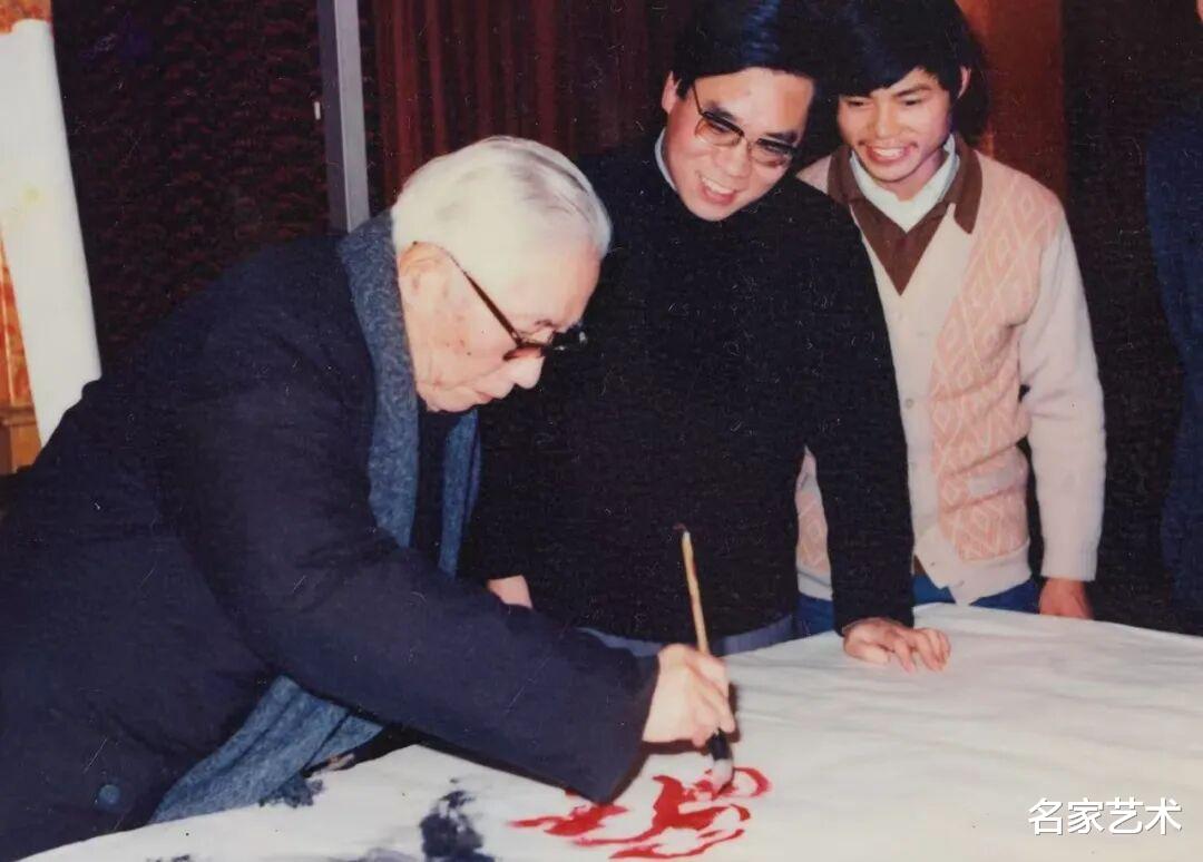 1989年 纪念上海解放四十周年书画会上观摩唐云作画