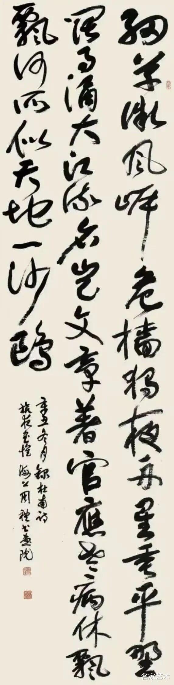 在这艺术殿堂里由于长年汲取画院众多书画前辈面授独到的技法,加之经常为老先生们打下手零距离悉心观摩创作用笔门道;几十年来,周国全书法艺术获得长足进步,技艺日臻完善成熟。许是年青时做过木工活的缘由。,他原本欣赏书体结构骨子硬胀书体,亦如“诗圣”杜甫倡导的“书贵瘦硬方通神”。因此,他早年临习强调骨力的唐柳公权、宋苏轼书法之余,特别喜欢郑文公碑和魏碑等。近十余年则又研究起于右任、张芝、怀素的草书碑帖,用现代眼光去其糟粕,取其精华,把当下的情怀融入书写路径中,形成点划浑厚、结体穆然、规范灵动、线质迺劲的境界。