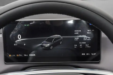 这款车的增程发动机是1.5L的,最大马力95Ps,最大功率70kW,主要是给电池充电,不是直接驱动车轮;电动机总功率170kW,扭矩320N・m,开起来很有劲。平时在市区开,起步很轻快,超车也很轻松,不会觉得“肉”。