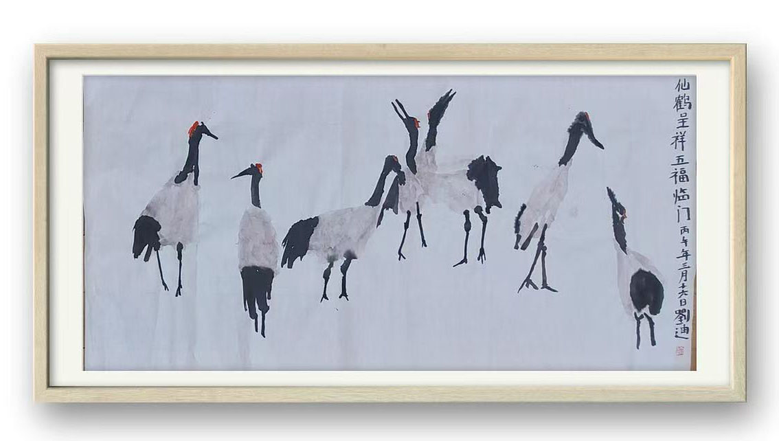 My name is Liu Di. I have been fascinated by calligraphy and painting since childhood. Once, when I was at a neighbor's house, I saw a piece of calligraphy that immediately captivated me. I found it beautiful, and my love for calligraphy and painting has been deeply ingrained in me ever since. On the journey of learning calligraphy and painting, I am someone who puts in a lot of effort. When I first started, I went to the library to browse through world-renowned paintings and to art museums to view paintings. I extensively copied the works of ancient masters and contemporary masters, seeking the essence of thought and the techniques of brushwork from them. Especially after retirement, I continue to practice late into the night, no matter how difficult the journey may be. I never forget my original aspiration and always pursue my dreams. In landscape painting, I strive for sincerity, simplicity, depth, grandeur, and naturalness. In flower and bird painting, I aim for dryness, tranquility, and liveliness. I take masters like Chen Zizhuang, Zhao Zhenchuan, Cui Zifan, Zhang Peng, and Wang Yong as my role models. They are all masters of inheritance and innovation. From their works, I ponder and learn from their strengths, seeking new breakthroughs in calligraphy and painting. At the same time, I go to nature to sketch and have created a large number of calligraphy and painting works. The pursuit of innovation has left a deep imprint in my mind. Painting brings me joy, and I often compare myself to a silkworm and write poems, "The clever silkworm spins silk in its belly, weaves a cocoon in its room, and dreams of fragrance. But humans prefer beauty, so I accompany the bride as she marries." I want to pass on beautiful things to everyone.