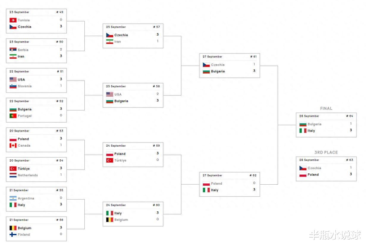 2025年男排世锦赛欧洲黑马呈现集体井喷之势:意大利男排成功卫冕,收获队史第五冠;尼科洛夫兄弟带领保加利亚男排时隔55年再次将世锦赛亚军收入囊中,平历史最佳战绩;世界排名第一的波兰男排在伤病满营的情况下仍然站上领奖台,保持连续四届都有奖牌入账;没资格参加今年世界联赛的捷克男排自1970年后又一次杀进四强;获得第六名的土耳其男排和第七名的比利时男排双双创造队史最好成绩。