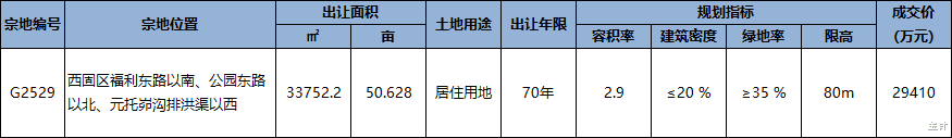 11月19日,胜财(兰州)房地产开发有限公司以29410万元,成功拿下西固区福利东路以南、元托峁沟排洪渠以西、公园东路以北,总面积约50.628亩的居住用地。