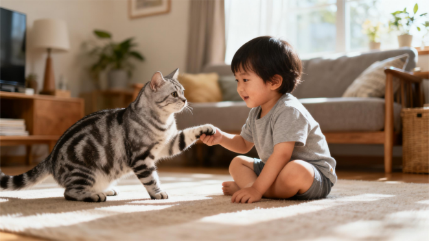 3.2 社交行为被誉为 “家庭友好型猫种”,美国短毛猫性格温顺沉稳,具有极强的包容性。对主人忠诚亲近,会主动依偎在身边,但不黏人,尊重主人的个人空间,不会过度索取关注。与儿童相处融洽,能容忍孩子的轻微打闹,且会主动回避危险动作,避免抓伤孩子。对家中其他宠物(如狗、其他猫)也能快速接纳,很少发生冲突,是多宠物家庭的理想选择。